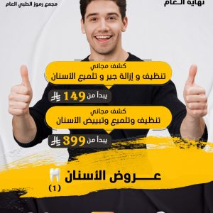 كشف مجاني , تنظيف وتلميع وتبييض الأسنان